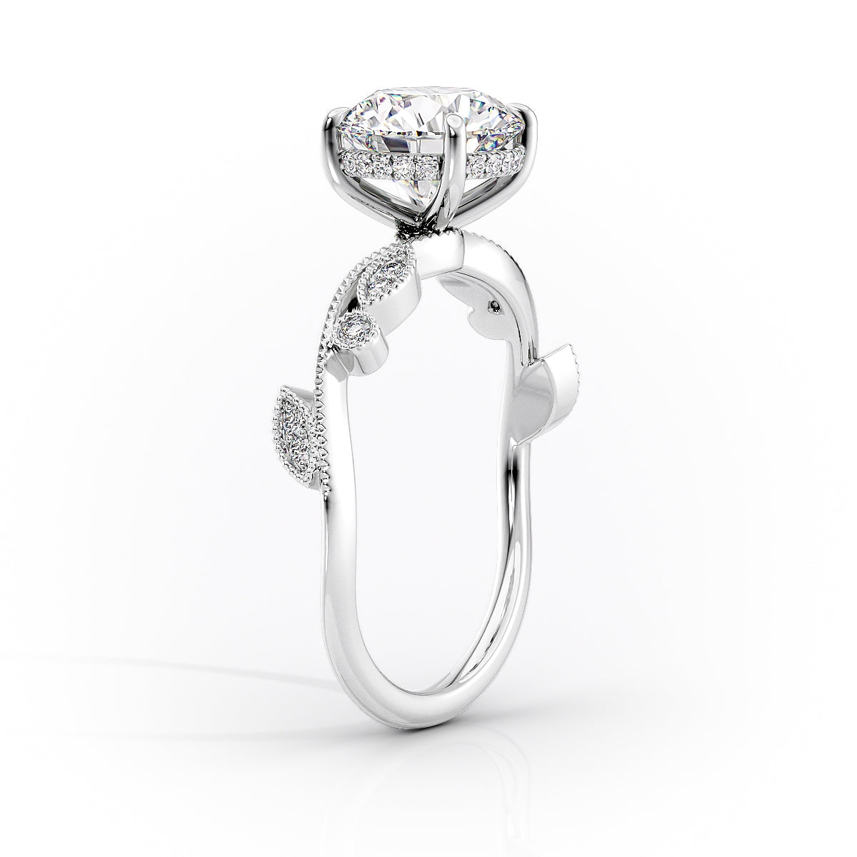 Twig Hidden Halo Round Diamond Ring 925 Sterling Silver