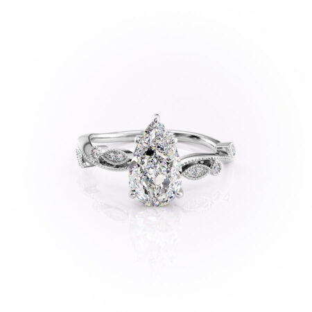 Hidden Halo Madison Setting Pear Diamond Ring 925 Sterling Silver