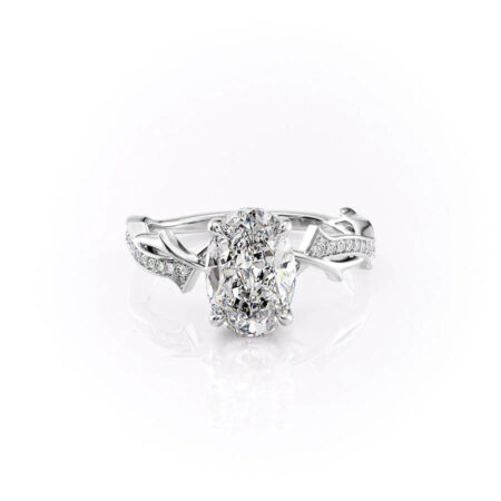 Hidden Halo twig Setting Oval Diamond Ring 925 Sterling